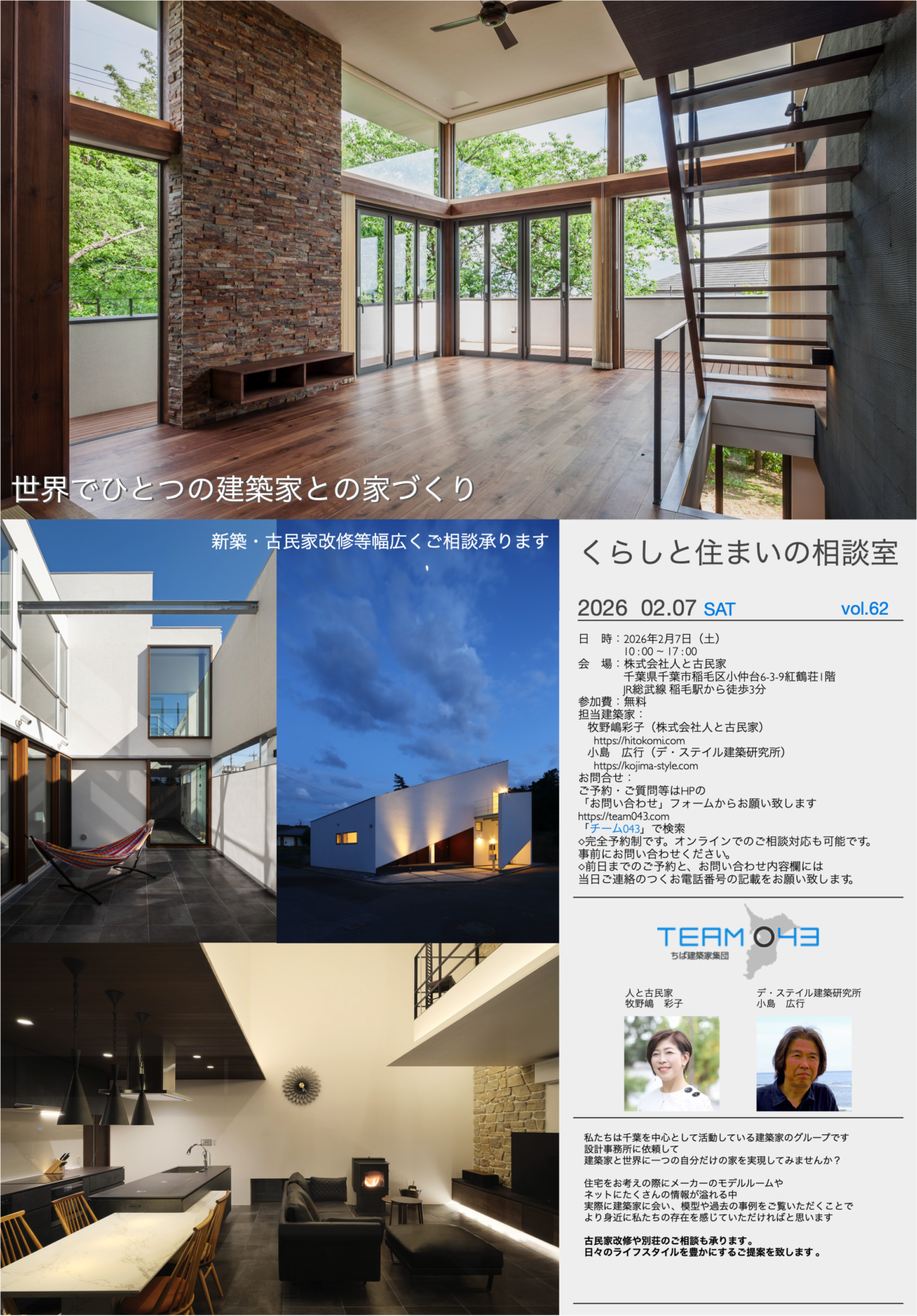 #ちば建築家集団 「チーム43」とは千葉市で建築設計事務所を主催する、5人の建築家グループ。
