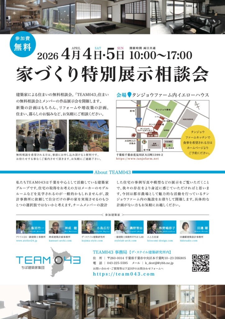 千葉を中心に活動する建築家グループ TEAM043 のメンバーによる、